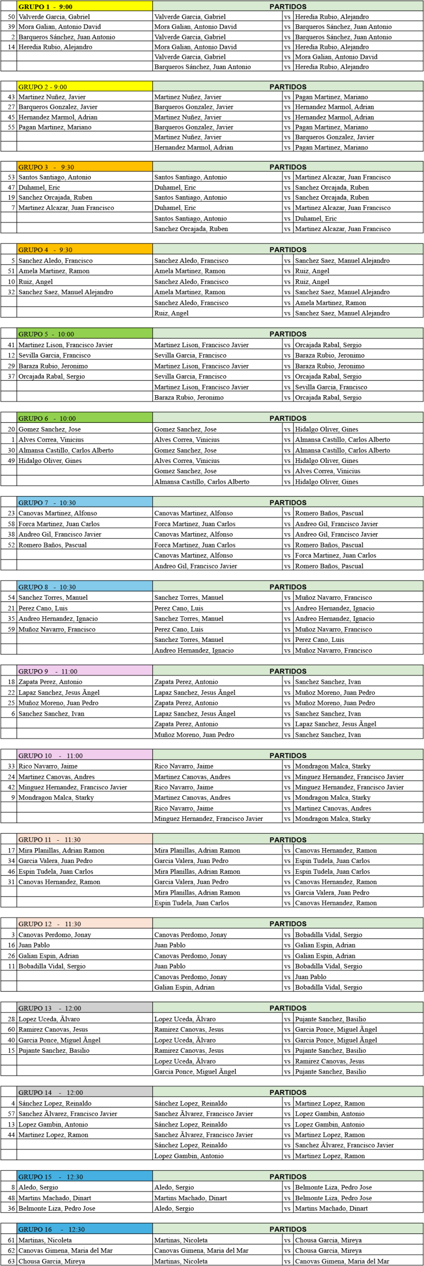 - Fase previa (Grupos) desde las 9h hasta las 13h